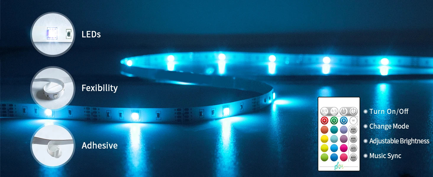 Material: High-quality, flexible LED strips with strong adhesive backing.