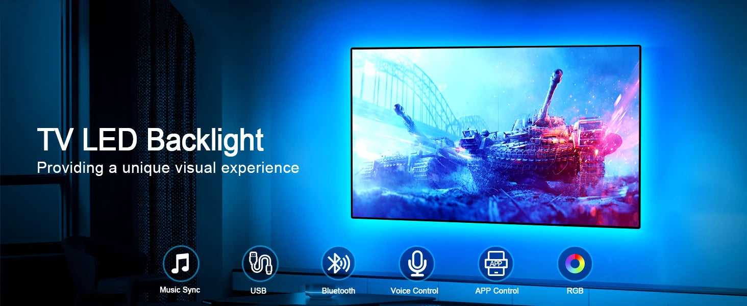 Transform your living space with our Spanish-inspired TV LED light strip! Featuring 16 vibrant colors, voice control, and smart dimming, this LED strip creates the perfect ambiance for movie nights, parties, or relaxation. Bring the passion and charm of Spain into your home with just a touch of light!