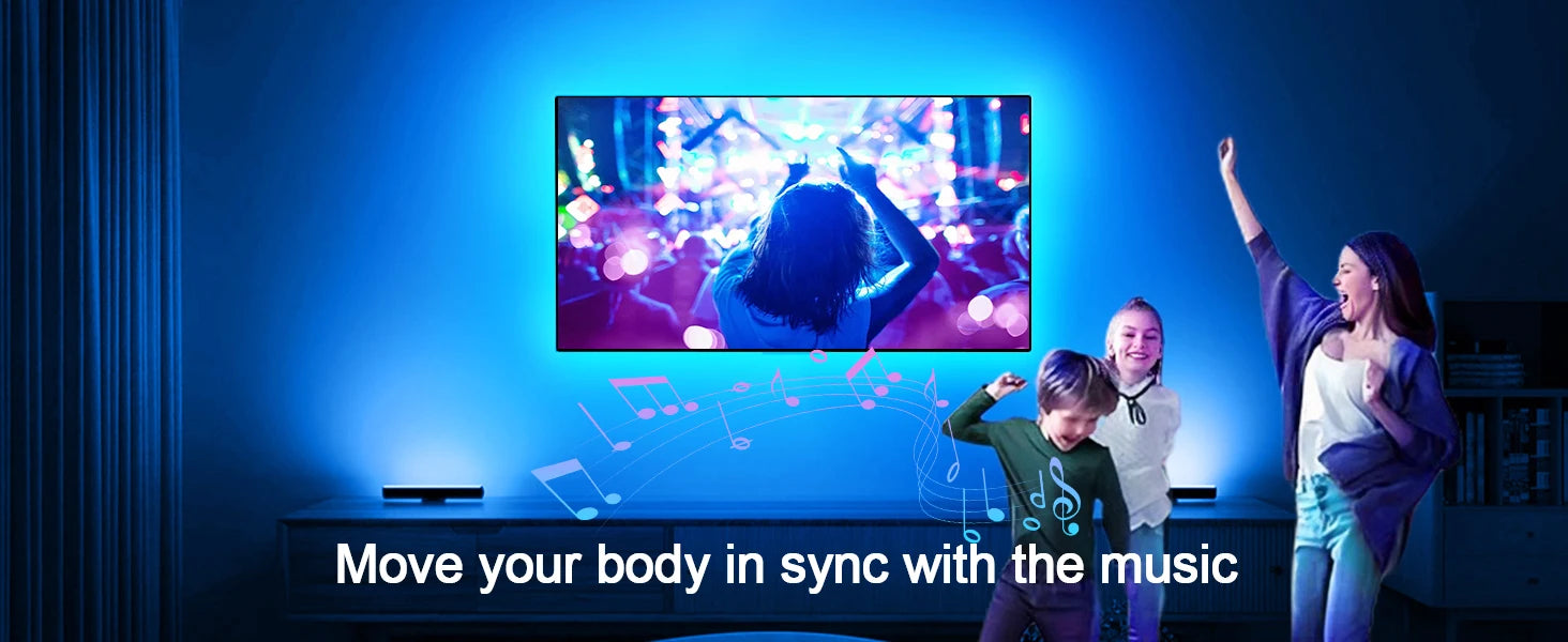 GIPOYENT TV LED Backlight Light Strip Bluetooth APP Control Music Sync RGB Color Changi Backlight For TV 32-60 Inch 3M-10M