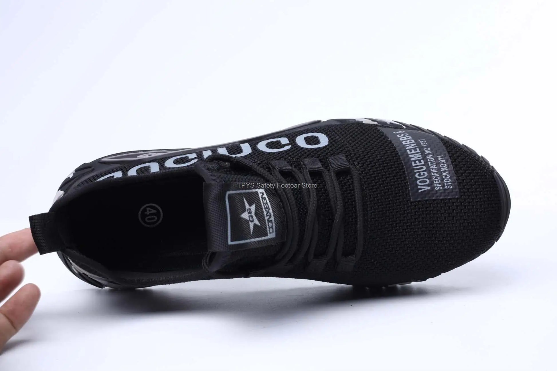 Super light safety shoe:It is like the weight of a pair of running shoes. They can help you to work happily all day without exhausting your feet. With super soft insoles and High elastic sole, your feet are safe and comfortable. Flying knit upper is very soft, Keep your feet comfortable and breathable.