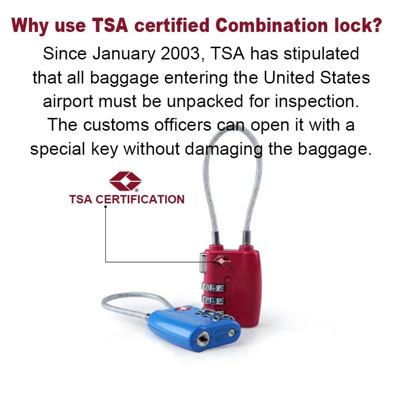 TSA is the Transportation Security Administration. Since January 2003, TSA has stipulated that all baggage entering the U.S. airport must be unpacked for inspection. If the Combination lock certified by TSA is used, customs officers can open it with a special key without damaging the baggage; If other locks are used, customs have the right to pry open the luggage. In recent years, with the increasing security inspections in various countries, TSA has gradually become an international standard.